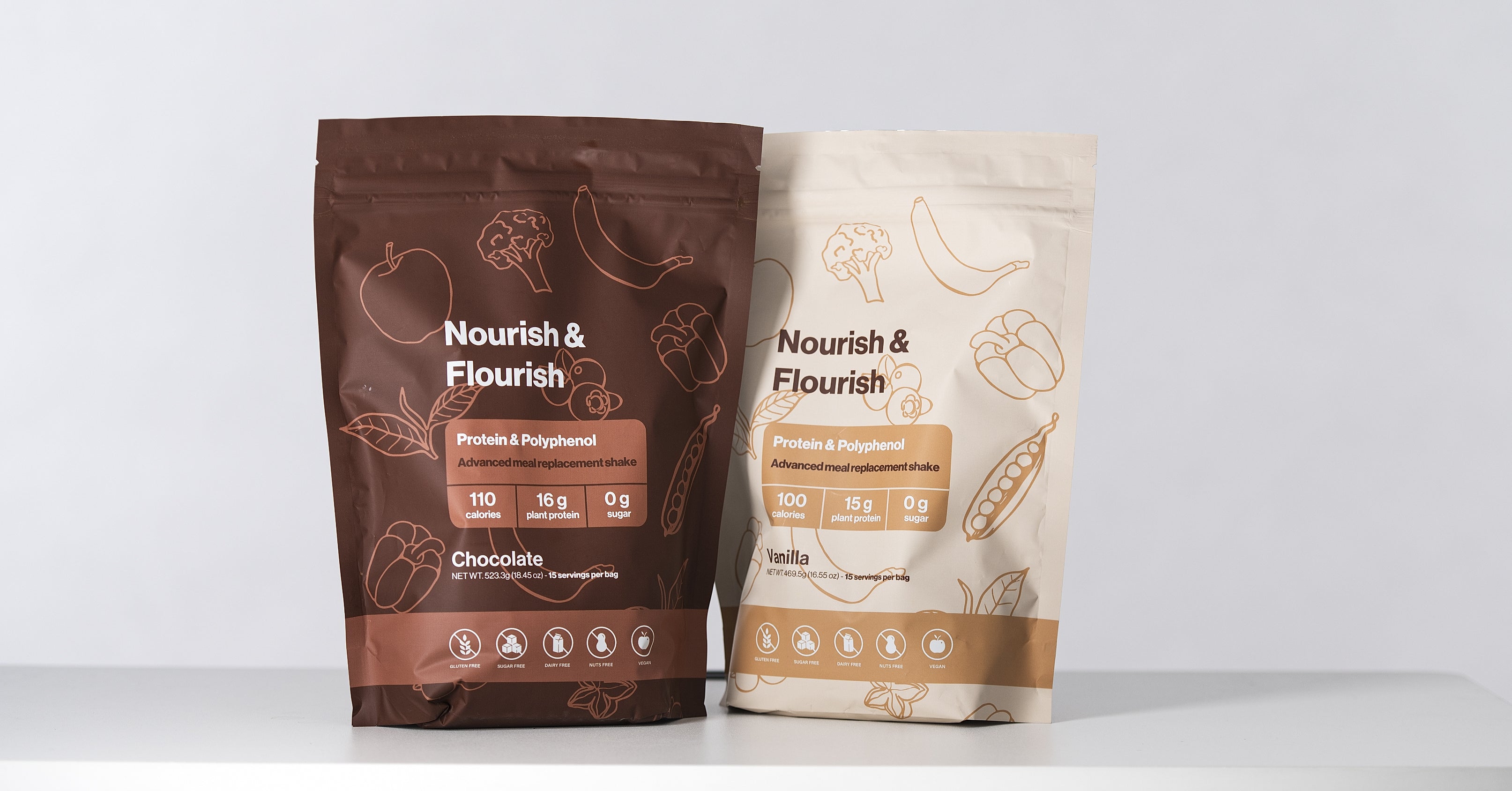 Nourish & Flourish® is the meal replacement shake with a perfect balance of macronutrients, superfoods, and bioavailable vitamins. It’s the easiest way to give your body everything it needs, every single day.